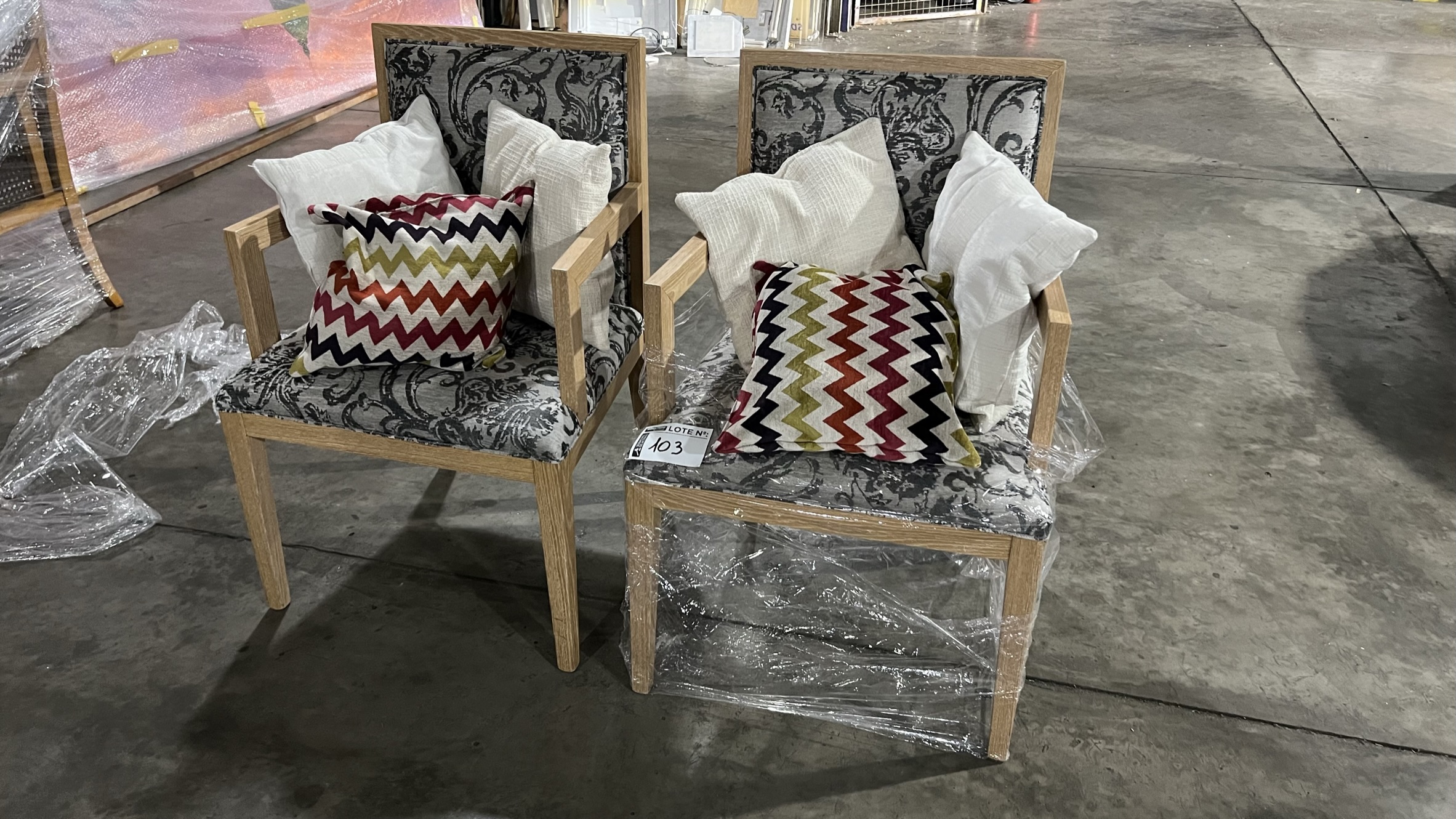 Lote 103: Subasta de Activos - Monasterio Tattersall Inicios Productos Información Contacto Lote Anterior Volver al remate Lote Siguiente Imágenes Categoría: Mobiliario Localidad: CABA Marca: SILLAS Mandante: INT. HEALTH SERVICES ARG. S.A. Observaciones: 2 SILLONES DE UN CUERPO CON APOYA BRAZO, DE MADERA FINA CLARA, TAPIZADO GRIS, CON ALMOHADONES. Argentina, CABA Bruno +54 (911) 5745 0057 Email: claurenzana@monasterio.com.ar Subasta de Activos - Monasterio Tattersall * * *