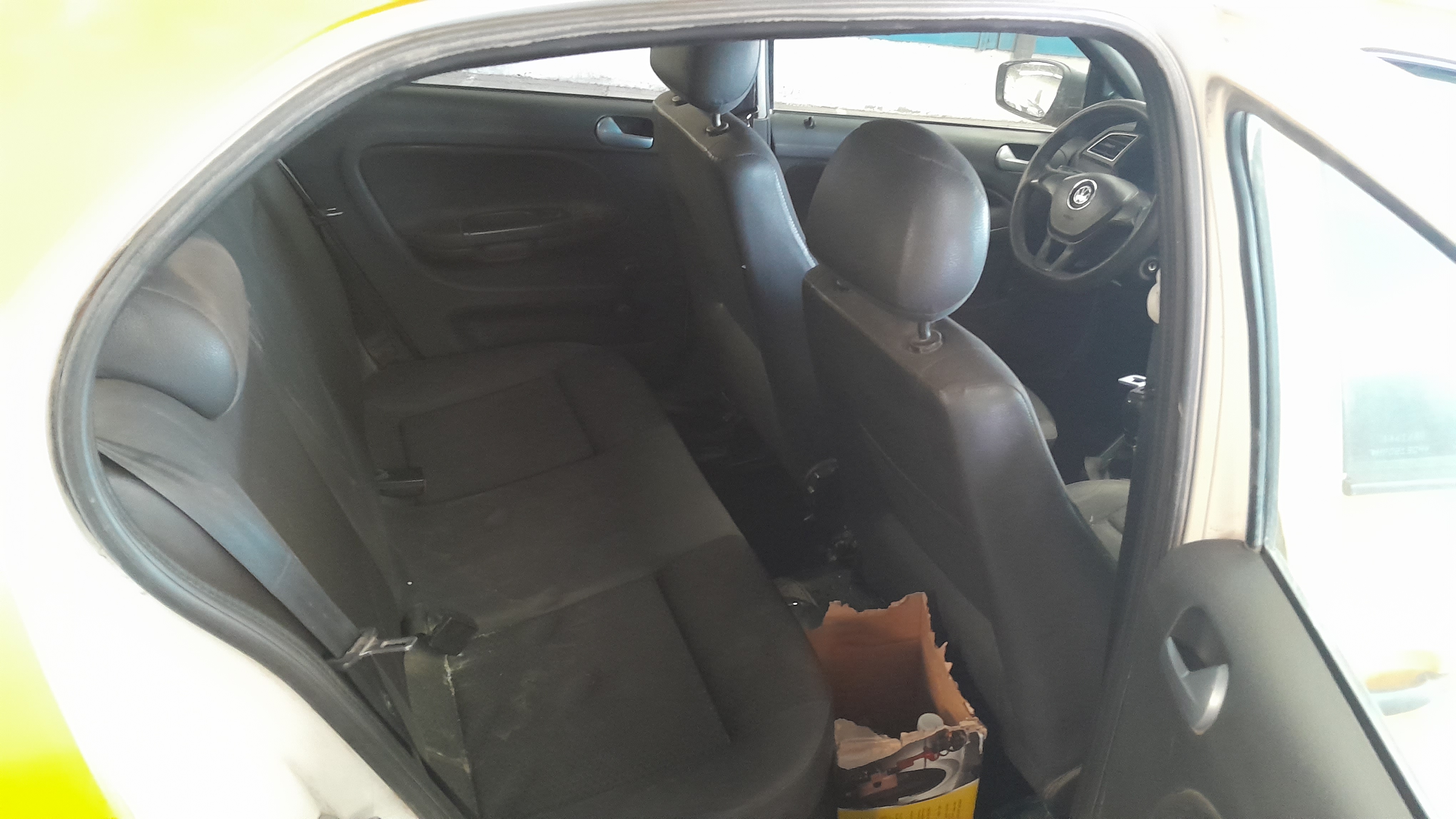 VOLANTE GASTADO, TAPIZADO ROTO Y MANCHADO, SEGURO DE PUERTA DEL. IZQ. ROTA, ALFOMBRA DESPEGADA LADO IZQUIERDO |