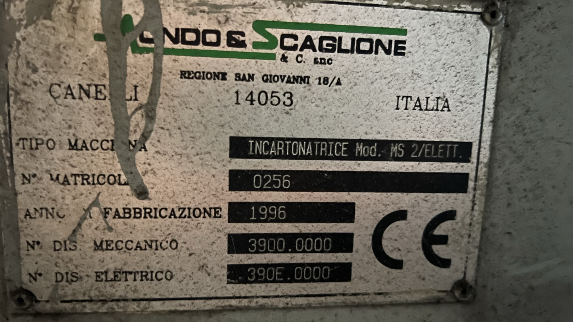 SE OFERTA EN EL LOTE 301 - ENCAJONADORA "MONDO & SCAGLIONE" - MODELO MS 2/ELETT. FABRICADO EN ITALIA - AÑO 1996 - CON FALTANTES |