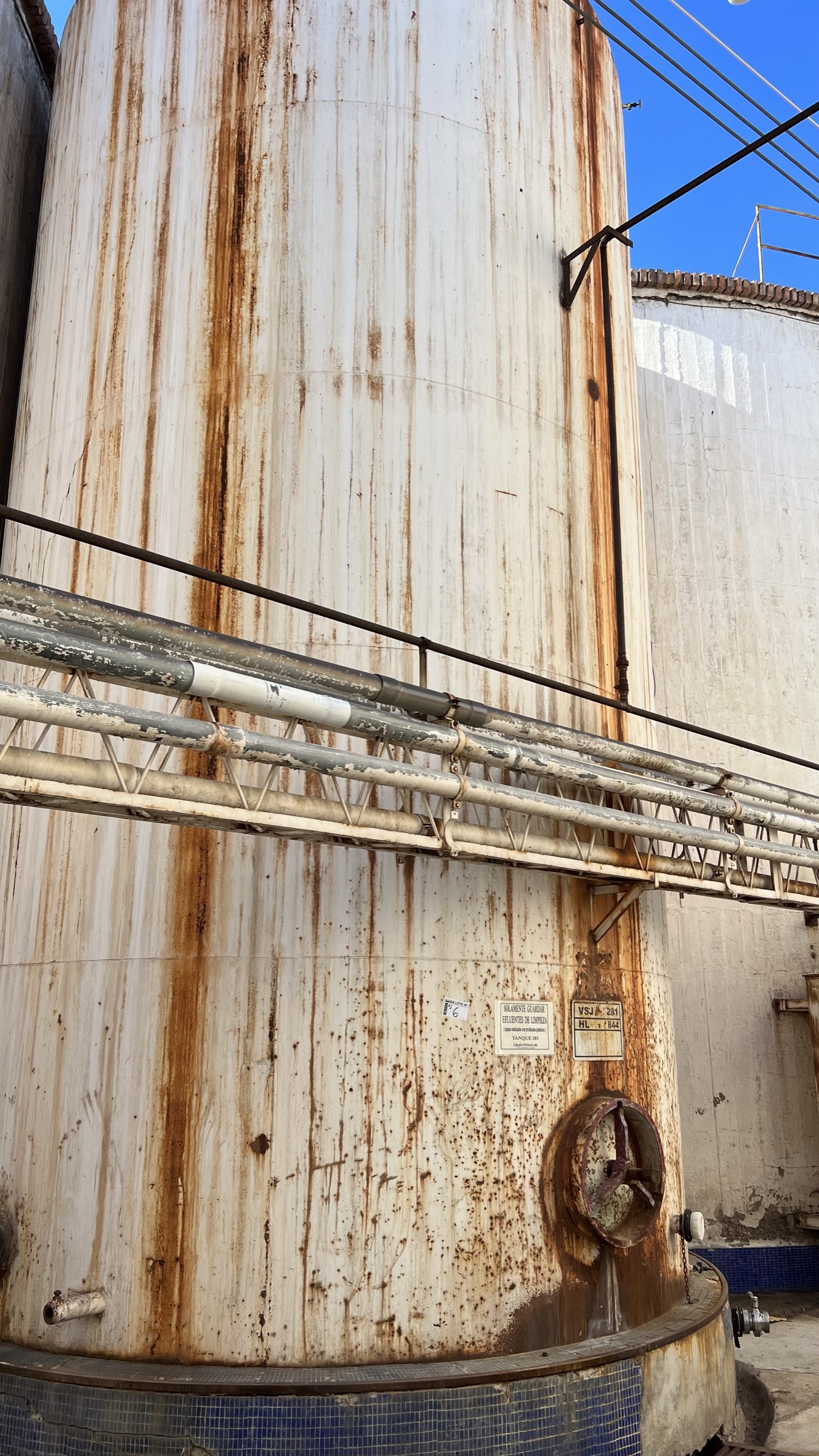 3 TANQUES ACERO A DESMONTAR PARA CORTE Y DESGUECE COMO CHATARRA - TQ 281, TQ 266, TQ 283 - ESTAN EN PLANTA BAJA A CIELO ABIERTO - SE PUEDE LLEGAR A ASISTIR LA CARGA CON AUTOELEVADOR 2,5TN Y CRANE 4TN |