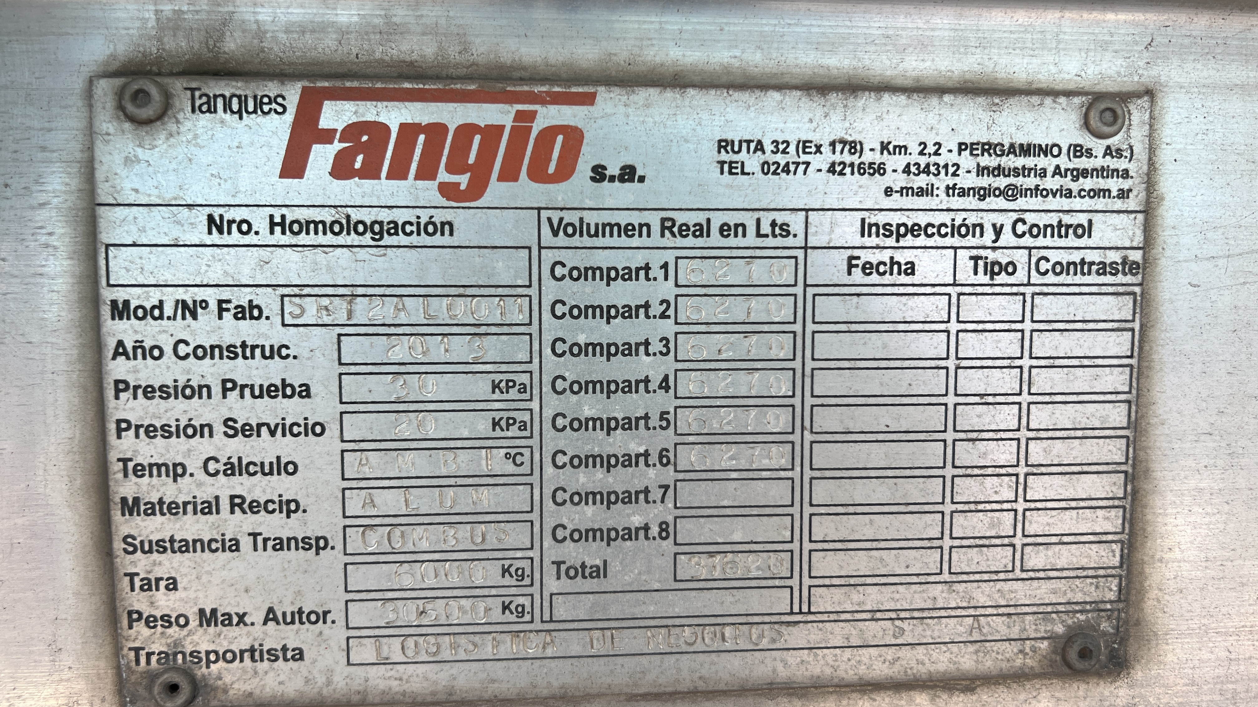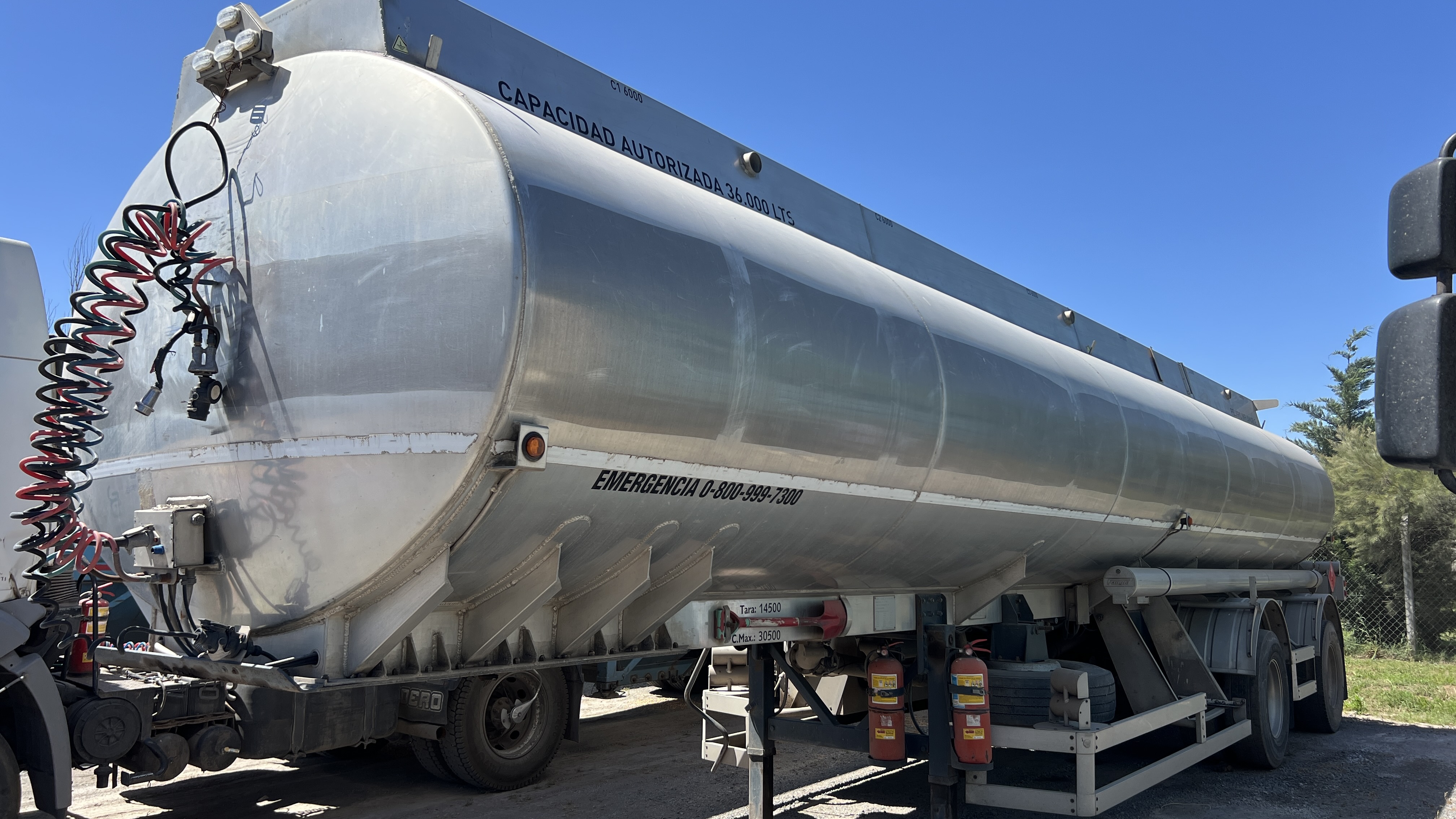 SEMIRREMOLQUE CISTERNA MARCA FANGIO SRT2AL0011 - TIPO SEMIRREMOLQUE TANQUE - DE ALUMINIO, CON AUXILIO, CUBIERTAS BIEN, CAPACIDAD 30.500 LTS |