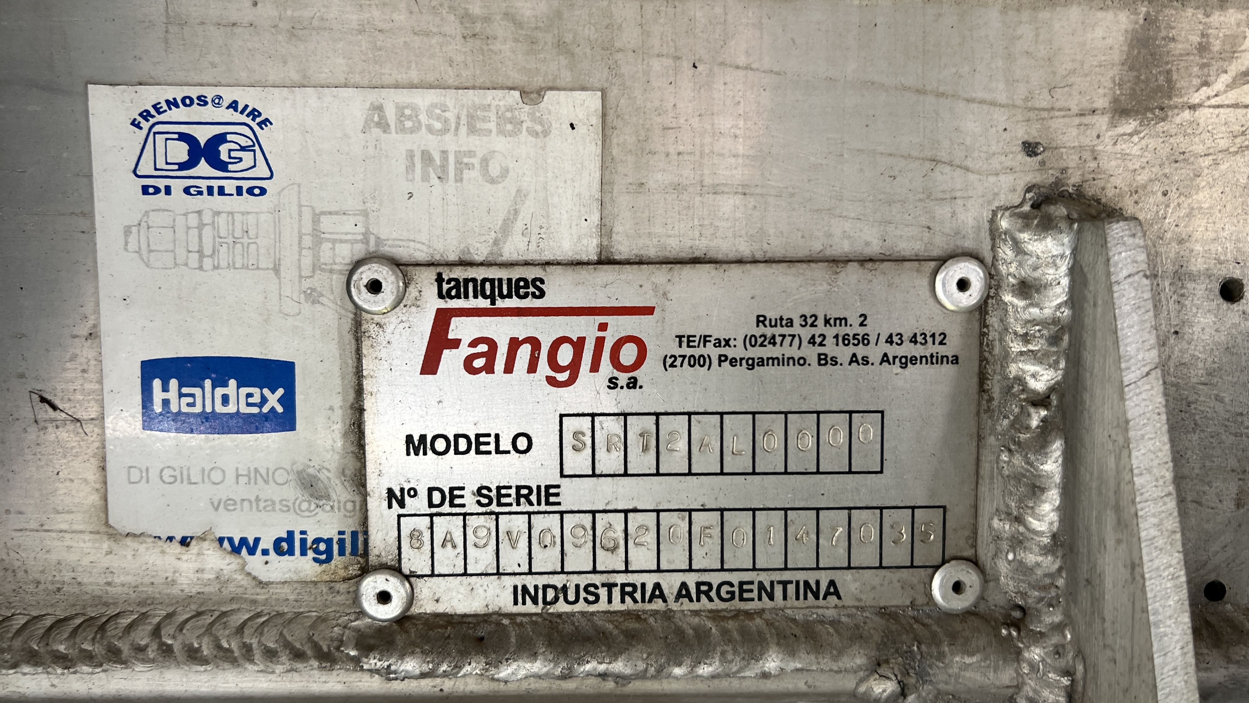 SEMIRREMOLQUE CISTERNA MARCA FANGIO SRT2AL0000 - TIPO SEMIRREMOLQUE - DE ALUMINIO, CON AUXILIO, CUBIERTAS BIEN, CAPACIDAD 30.500 LTS |