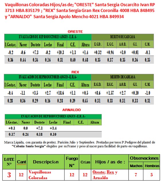 LOTE 3, 12 Vaquillonas PC Coloradas c/12 crias