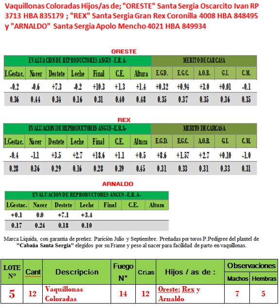 LOTE 5, 12 Vaquillonas PC Coloradas c/12 crias