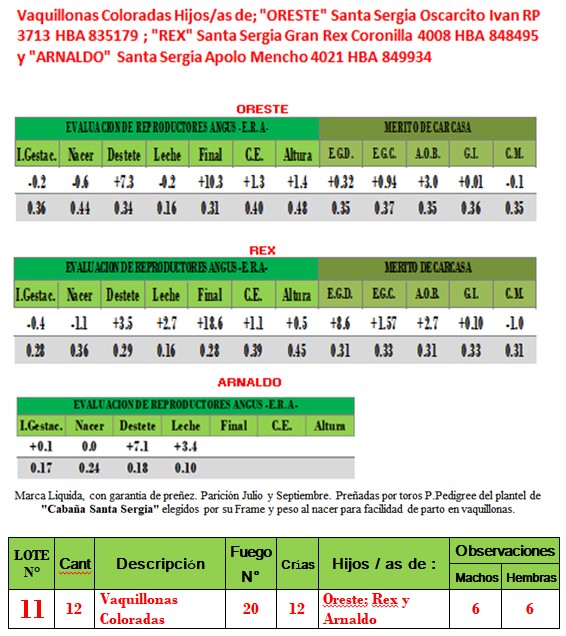 LOTE 11, 12 Vaquillonas PC Coloradas c/12 crias