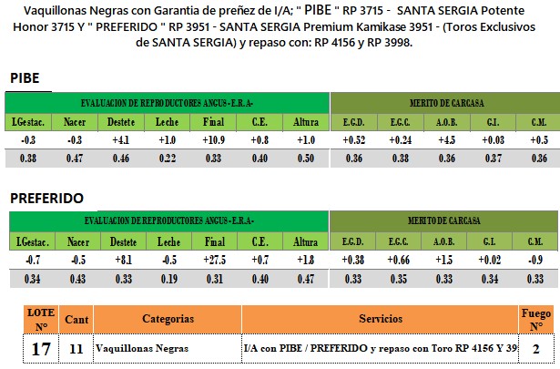 | Categoría | Vaquillonas PC preñadas |