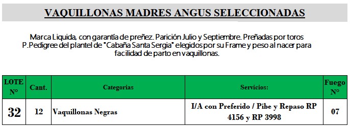 LOTE 32, 12 Vaquillonas MAS Negras c/gtia. de preñez