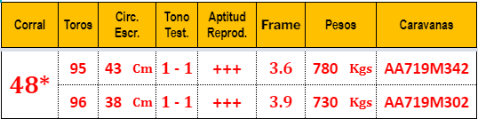 LOTE 99, Toros Puros Controlados Colorados