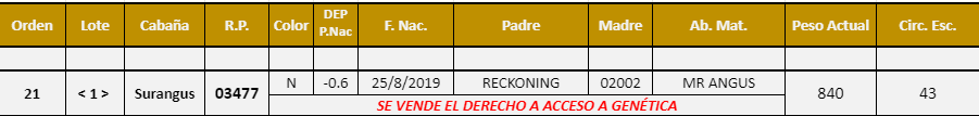 LOTE 21, Selección de Toros Surangus 🔥 🔥 🔥 Lote Anterior Volver al remate Lote Siguiente Información del Lote Pedigree Contacto Buenos Aires - Información del Lote Identificador: #119110 Categoría Toros PP Raza Angus Provincia Buenos Aires Plazo 60 y 90 días Buenos Aires - 87 Visualizaciones ClicData Pedigree Contacto Comercial a cargo: Martin Lopez Llovet Empresa: LARTIRIGOYEN Y OROMÍ S.A Nombre*: E-mail* : Mensaje Enviar Registrese gratis Este contenido Exclusivo está disponible sólo para usuarios registrados Ingresar
