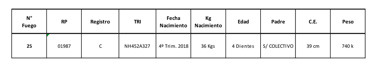 LOTE 11-Nº 25, LOTE 11 - TORO BRAFORD NO. 25 🔥 🔥 🔥 Lote Anterior Volver al remate Lote Siguiente Información del Lote Pedigree Ofertar Contacto Corrientes - Curuzú-Cuatiá Información del Lote Identificador: #121971 Categoría Machos Controlados Raza Braford Provincia Corrientes Ubicación Curuzú-Cuatiá Plazo Consultar Corrientes - Curuzú-Cuatiá Ofertar Fecha de cierre: 19 de Agosto a las 18:00hs. Prórroga: 1 segundos Aún no tiene ofertas Plazo: Contado 7 y 14 días 15 días 30 y 60 del remate 20 días 21 dias 30 del remate 30 días 30 y 45 dias 40 días 25 días del remate 45 días 30 y 60 días 25 y 55 días 0, 30 y 60 días 25 días 55 días 60 días 60, 90 y 120 días 30, 60 y 90 días 70 días 60 y 90 días 35 y 65 días 30 y 50 días 25 y 40 días 30 y 40 días 90 días 50 y 100 días 120 días 60 días del remate 30 y 45 Días del Remate 30 y 45 Días 20/50 y 80 días 30 días del remate 30 y 60 días del remate 30, 60 y 90 días del remate 30 y 45 Días 50 y 80 días 20 y 50 días 45 Días del Remate 17 días 15 - 50 días 28 días 30-60-90 O 60 25-55-85 25-45 días 18 días Desde el Remate 150 días 180 días 25, 55 y 85 días 30, 60, 90, 120 y 150 días 30, 60, 90 y 120 días 0, 30, 60 y 90 dias 20, 40 y 60 días 6 Cuotas Otro Consultar Su Oferta en $: − + Step: -0,01 / +0,01 Programar puja hasta: Programar puja hasta Aumentar puja programada 230000.02 230000.2 ** Iniciar sesión para ofertar Ofertar Ofertas Recibidas $ Fecha/Hora Estado Este lote aún no tiene preofertas. 150 Visualizaciones ClicData Pedigree Contacto Comercial a cargo: Marcelo Marnetto Empresa: ETCHEVEHERE RURAL S.R.L Nombre*: E-mail* : Mensaje Enviar Registrese gratis Este contenido Exclusivo está disponible sólo para usuarios registrados Ingresar