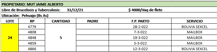 LOTE 24, Alberto Mut Lote Anterior Volver al remate Lote Siguiente Ficha Contacto Buenos Aires - Pehuajó Ficha del Lote Identificador: #145463 Cantidad: 5 Categoría: Vaquillonas adelantadas Pedigree Plazo 4 cuotas Raza Holando Argentino Buenos Aires - Pehuajó 38 Visualizaciones ClicData Contacto Comercial a cargo: Mauricio Empresa: Cooperativa Agrícola Ganadera Guillermo Lehmann Nombre*: Teléfono* : E-mail* : Mensaje Enviar Registrese gratis Este contenido Exclusivo está disponible sólo para usuarios registrados Ingresar