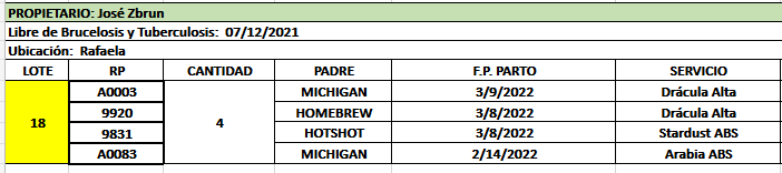 LOTE 18, Jose Zbrun Lote Anterior Volver al remate Lote Siguiente Ficha Contacto Santa Fe - Rafaela Ficha del Lote Identificador: #145802 Cantidad: 4 Categoría: Vaquillonas preñadas Pedigree Plazo 4 cuotas Raza Holando Argentino Santa Fe - Rafaela 45 Visualizaciones ClicData Contacto Comercial a cargo: Mauricio Empresa: Cooperativa Agrícola Ganadera Guillermo Lehmann Nombre*: Teléfono* : E-mail* : Mensaje Enviar Registrese gratis Este contenido Exclusivo está disponible sólo para usuarios registrados Ingresar