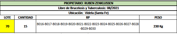 LOTE 70, Ruben Zenclussen Lote Anterior Volver al remate Lote Siguiente Ficha Contacto Santa Fe - Videla Ficha del Lote Identificador: #145832 Cantidad: 15 Categoría: Vaquillonas P/ entorar Peso: 230Kg. Pedigree Plazo 4 cuotas Raza Holando Argentino Santa Fe - Videla 57 Visualizaciones ClicData Contacto Comercial a cargo: Mauricio Empresa: Cooperativa Agrícola Ganadera Guillermo Lehmann Nombre*: Teléfono* : E-mail* : Mensaje Enviar Registrese gratis Este contenido Exclusivo está disponible sólo para usuarios registrados Ingresar
