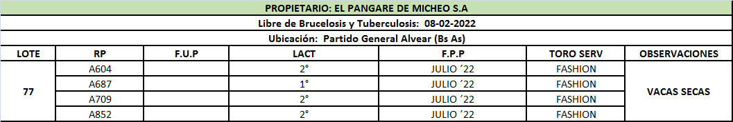 LOTE 77, Vacas Secas - El Pangare DE Micheo S.A 🔥 🔥 🔥 Lote Anterior Volver al remate Lote Siguiente Ficha Contacto Buenos Aires - Gral. Alvear Ficha del Lote Identificador: #153431 Cantidad: 4 Categoría: Vacas secas Pedigree Plazo 30, 60, 90 y 120 días Buenos Aires - Gral. Alvear 54 Visualizaciones ClicData Contacto Comercial a cargo: Mauricio Empresa: Cooperativa Agrícola Ganadera Guillermo Lehmann Nombre*: Teléfono* : E-mail* : Mensaje Enviar Registrese gratis Este contenido Exclusivo está disponible sólo para usuarios registrados Ingresar