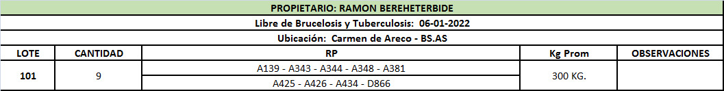 LOTE 101, Vaquillonas Para Entorar - Ramon Bereheterbide Lote Anterior Volver al remate Lote Siguiente Ficha Contacto Buenos Aires - Carmen de Areco Ficha del Lote Identificador: #153442 Cantidad: 9 Categoría: Vacas P/ entorar Peso: 300Kg. Pedigree Plazo 30, 60, 90 y 120 días Buenos Aires - Carmen de Areco 43 Visualizaciones ClicData Contacto Comercial a cargo: Mauricio Empresa: Cooperativa Agrícola Ganadera Guillermo Lehmann Nombre*: Teléfono* : E-mail* : Mensaje Enviar Registrese gratis Este contenido Exclusivo está disponible sólo para usuarios registrados Ingresar