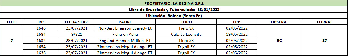 LOTE 7, Vaquillonas Preñadas Lala Regina S.R.L 🔥 🔥 🔥 Lote Anterior Volver al remate Lote Siguiente Ficha Contacto Santa Fe - Roldán Ficha del Lote Identificador: #153510 Cantidad: 5 Categoría: Vaquillonas preñadas Pedigree Plazo 30, 60, 90 y 120 días Santa Fe - Roldán 78 Visualizaciones ClicData Contacto Comercial a cargo: Mauricio Empresa: Cooperativa Agrícola Ganadera Guillermo Lehmann Nombre*: Teléfono* : E-mail* : Mensaje Enviar Registrese gratis Este contenido Exclusivo está disponible sólo para usuarios registrados Ingresar