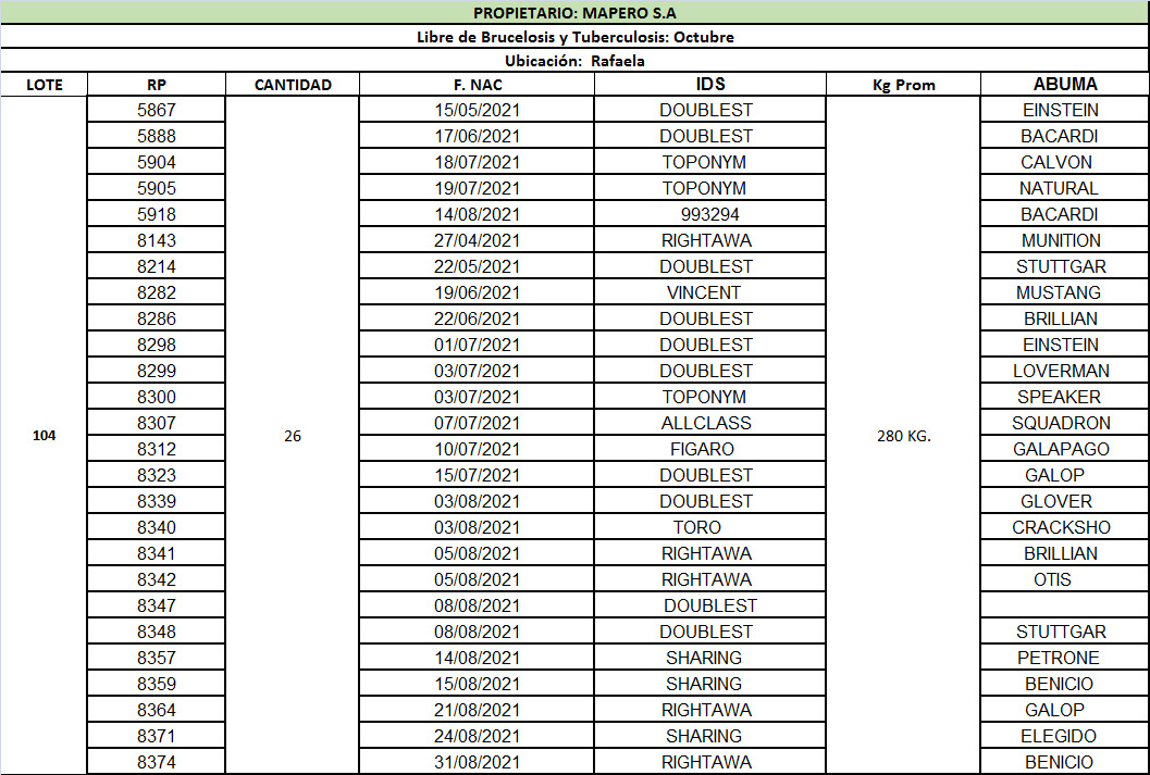 LOTE 104, Terneras - Mapero S.A 🔥 🔥 🔥 Lote Anterior Volver al remate Lote Siguiente Ficha Contacto Santa Fe - Rafaela Ficha del Lote Identificador: #153888 Cantidad: 26 Categoría: Terneras Peso: 280Kg. Pedigree Plazo 30, 60, 90 y 120 días Santa Fe - Rafaela 67 Visualizaciones ClicData Contacto Comercial a cargo: Mauricio Empresa: Cooperativa Agrícola Ganadera Guillermo Lehmann Nombre*: Teléfono* : E-mail* : Mensaje Enviar Registrese gratis Este contenido Exclusivo está disponible sólo para usuarios registrados Ingresar