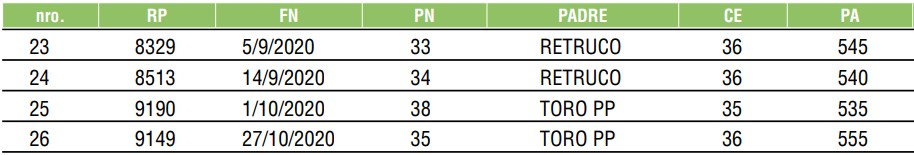 LOTE 56, TOROS ANGUS COLORADOS PC Lote Anterior Volver al remate Lote Siguiente Información del Lote Animales del Lote Pedigree Ofertar Contacto Buenos Aires - La Legua, Coronel Pringles, Prov. BA Información del Lote Identificador: #160092 Cantidad 4 Categoría Toros PC Raza Angus Colorado Provincia Buenos Aires Ubicación La Legua, Coronel Pringles, Prov. BA Buenos Aires - La Legua, Coronel Pringles, Prov. BA Ofertar Fecha de cierre: 08 de Junio a las 23:00hs. Aún no tiene ofertas Animales: (23)-8329 (24)-8513 (25)-9190 (26)-9149 Plazo: Contado 7 y 14 días 15 días 30 y 60 del remate 20 días 21 dias 30 del remate 30 días 30 y 45 dias 40 días 25 días del remate 45 días 30 y 60 días 25 y 55 días 0, 30 y 60 días 25 días 55 días 60 días 60, 90 y 120 días 30, 60 y 90 días 70 días 60 y 90 días 35 y 65 días 30 y 50 días 25 y 40 días 30 y 40 días 90 días 50 y 100 días 120 días 60 días del remate 30 y 45 Días del Remate 30 y 45 Días 20/50 y 80 días 30 días del remate 30 y 60 días del remate 30, 60 y 90 días del remate 30 y 45 Días 50 y 80 días 20 y 50 días 45 Días del Remate 17 días 15 - 50 días 28 días 30-60-90 O 60 25-55-85 25-45 días 18 días Desde el Remate 150 días 180 días 25, 55 y 85 días 30, 60, 90, 120 y 150 días 30, 60, 90 y 120 días 0, 30, 60 y 90 dias 20, 40 y 60 días 6 Cuotas Otro Consultar Su Oferta en $: − + Step: -10.000,00 / +10.000,00 Programar puja hasta: Programar puja hasta Aumentar puja programada 320000 500000 **Oferta al bulto Iniciar sesión para ofertar Ofertar Compra por $ 99.000.000,00 Ofertas Recibidas $ Fecha/Hora Estado Este lote aún no tiene preofertas. ¿Estás seguro de comprar el LOTE TOROS ANGUS COLORADOS PC por $ 99000000 ? 73 Visualizaciones ClicData Animales del Lote RP (23)-8329 (24)-8513 (25)-9190 (26)-9149 PADRE RETRUCO RETRUCO TORO PP TORO PP NAC 5/9/2020 14/9/2020 1/10/2020 27/10/2020 CE 36 36 35 36 PF 565 570 550 560 PN 33 34 38 35 PRECIO BASE 0.00 0.00 0.00 0.00 RP (23)-8329 PADRE RETRUCO NAC 5/9/2020 CE 36 PF 565 PN 33 PRECIO BASE 0.00 RP (24)-8513 PADRE RETRUCO NAC 14/9/2020 CE 36 PF 570 PN 34 PRECIO BASE 0.00 RP (25)-9190 PADRE TORO PP NAC 1/10/2020 CE 35 PF 550 PN 38 PRECIO BASE 0.00 RP (26)-9149 PADRE TORO PP NAC 27/10/2020 CE 36 PF 560 PN 35 PRECIO BASE 0.00 Pedigree Contacto Empresa: LANUSSE-SANTILLAN Y CIA. S.A. Nombre*: E-mail* : Mensaje Enviar Registrese gratis Este contenido Exclusivo está disponible sólo para usuarios registrados Ingresar