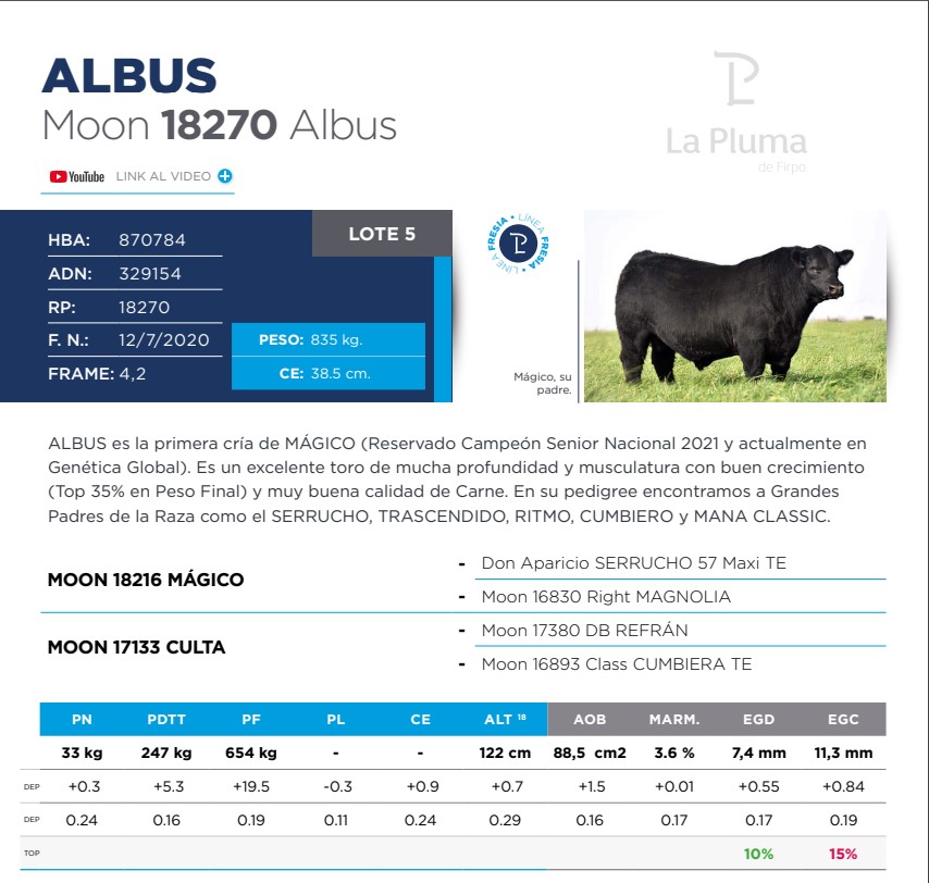 LOTE 5-RP 18270, Toros PP Destacados 🔥 🔥 🔥 Lote Anterior Volver al remate Lote Siguiente Información del Lote Animal Pedigree Ofertar Contacto Santa Fe - Maggiolo Información del Lote Identificador: #165310 Categoría Toros PP Raza Angus Certificado 9 Provincia Santa Fe Ubicación Maggiolo Propietario La Pluma Santa Fe - Maggiolo Ofertar Fecha de cierre: 06 de Julio a las 17:00hs. Aún no tiene ofertas Animales: 18270 Plazo: Contado 7 y 14 días 15 días 30 y 60 del remate 20 días 21 dias 30 del remate 30 días 30 y 45 dias 40 días 25 días del remate 45 días 30 y 60 días 25 y 55 días 0, 30 y 60 días 25 días 55 días 60 días 60, 90 y 120 días 30, 60 y 90 días 70 días 60 y 90 días 35 y 65 días 30 y 50 días 25 y 40 días 30 y 40 días 90 días 50 y 100 días 120 días 60 días del remate 30 y 45 Días del Remate 30 y 45 Días 20/50 y 80 días 30 días del remate 30 y 60 días del remate 30, 60 y 90 días del remate 30 y 45 Días 50 y 80 días 20 y 50 días 45 Días del Remate 17 días 15 - 50 días 28 días 30-60-90 O 60 25-55-85 25-45 días 18 días Desde el Remate 150 días 180 días 25, 55 y 85 días 30, 60, 90, 120 y 150 días 30, 60, 90 y 120 días 0, 30, 60 y 90 dias 20, 40 y 60 días 6 Cuotas Otro Consultar Su Oferta en $: − + Step: -10.000,00 / +10.000,00 Programar puja hasta: Programar puja hasta Aumentar puja programada 620000 800000 **Oferta al bulto Iniciar sesión para ofertar Ofertar Compra por $ 99.000.000,00 Ofertas Recibidas $ Fecha/Hora Estado Este lote aún no tiene preofertas. ¿Estás seguro de comprar el LOTE Toros PP Destacados por $ 99000000 ? 239 Visualizaciones ClicData Animal RP 18270 PRECIO BASE 0.00 NOMBRE ALBUS RP 18270 PRECIO BASE 0.00 NOMBRE ALBUS Pedigree Contacto Empresa: La Pluma de Firpo Nombre*: E-mail* : Mensaje Enviar Registrese gratis Este contenido Exclusivo está disponible sólo para usuarios registrados Ingresar