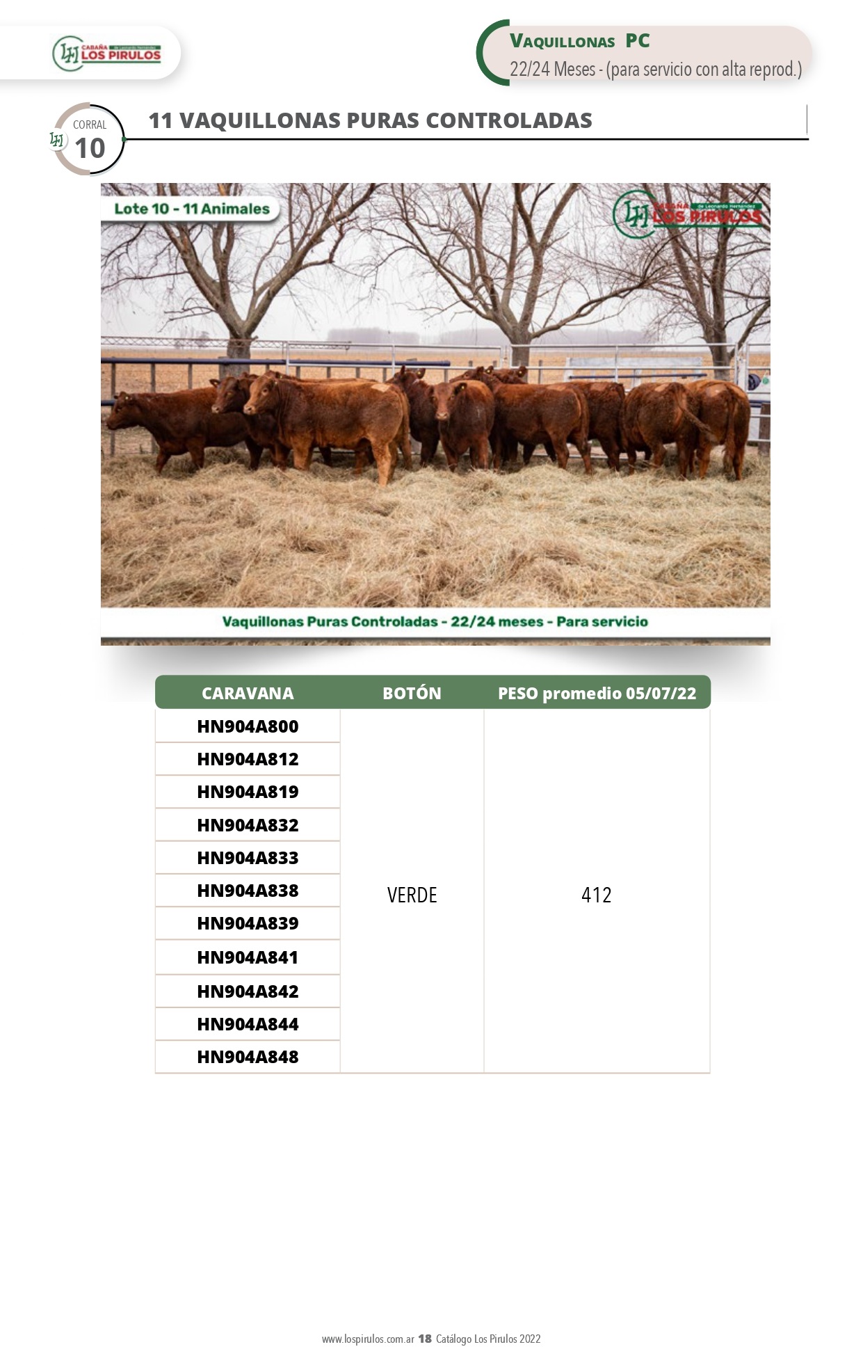 LOTE 10, VAQUILLONAS PURAS CONTROLADAS