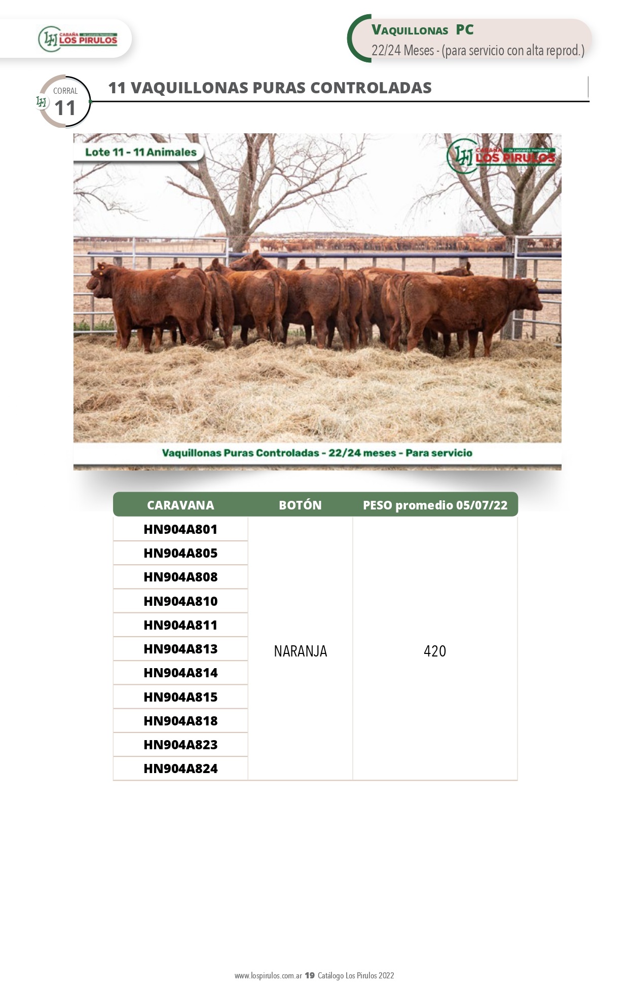 LOTE 11, VAQUILLONAS PURAS CONTROLADAS