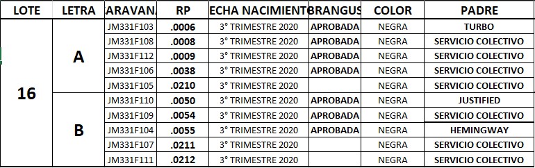 LOTE 16, """EL MATACO"" VAQUILLONAS PARA SERVICIO Lote Anterior Volver al remate Lote Siguiente Información del Lote Pedigree Ofertar Contacto Santa Fe - Providencia - Santa Fe Información del Lote Identificador: #167484 Cantidad 10 Categoría Vaquillonas Raza BRANGUS NEGRAS Peso Promedio 375 Provincia Santa Fe Ubicación Providencia - Santa Fe Plazo 90 días Santa Fe - Providencia - Santa Fe Ofertar Fecha de cierre: 04 de Agosto a las 19:50hs. Prórroga: 10 minutos Aún no tiene ofertas Plazo: Contado 7 y 14 días 15 días 30 y 60 del remate 20 días 21 dias 30 del remate 30 días 30 y 45 dias 40 días 25 días del remate 45 días 30 y 60 días 25 y 55 días 0, 30 y 60 días 25 días 55 días 60 días 60, 90 y 120 días 30, 60 y 90 días 70 días 60 y 90 días 35 y 65 días 30 y 50 días 25 y 40 días 30 y 40 días 90 días 50 y 100 días 120 días 60 días del remate 30 y 45 Días del Remate 30 y 45 Días 20/50 y 80 días 30 días del remate 30 y 60 días del remate 30, 60 y 90 días del remate 30 y 45 Días 50 y 80 días 20 y 50 días 45 Días del Remate 17 días 15 - 50 días 28 días 30-60-90 O 60 25-55-85 25-45 días 18 días Desde el Remate 150 días 180 días 25, 55 y 85 días 30, 60, 90, 120 y 150 días 30, 60, 90 y 120 días 0, 30, 60 y 90 dias 20, 40 y 60 días 6 Cuotas Otro Consultar 90 dias libres o 180 dias con el 15% de recargo en el precio de compra por interes Su Oferta en $: − + Step: -10.000,00 / +10.000,00 Programar puja hasta: Programar puja hasta Aumentar puja programada 150000 330000 **Oferta al bulto Iniciar sesión para ofertar Ofertar Compra por $ 99.000.000,00 Ofertas Recibidas $ Fecha/Hora Estado Este lote aún no tiene preofertas. ¿Estás seguro de comprar el LOTE """EL MATACO"" VAQUILLONAS PARA SERVICIO por $ 99000000 ? 40 Visualizaciones ClicData Pedigree Contacto Comercial a cargo: Diego Scotta Empresa: Agricultores Federados Argentinos - AFA Nombre*: E-mail* : Mensaje Enviar Registrese gratis Este contenido Exclusivo está disponible sólo para usuarios registrados Ingresar