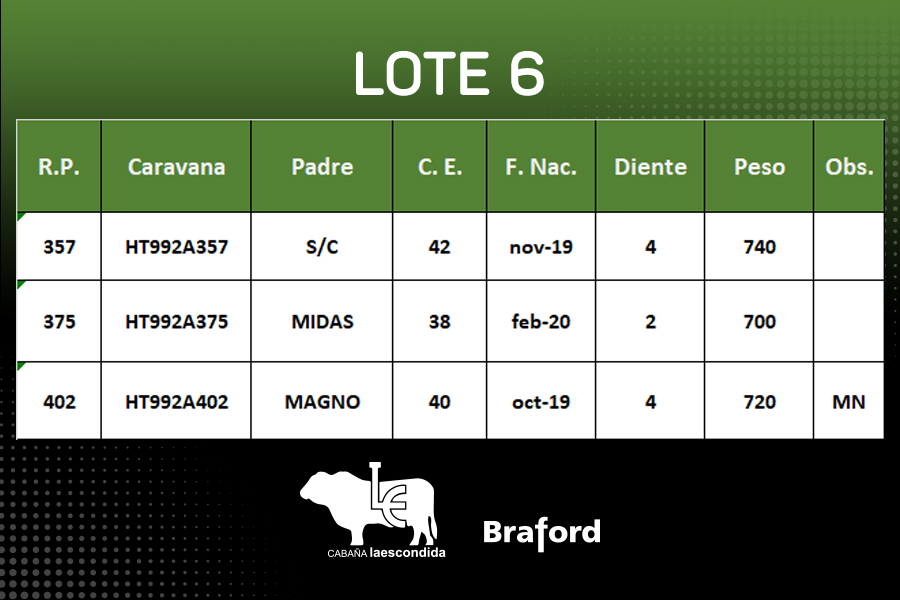 LOTE 6, TORO BRAFORD Lote Anterior Volver al remate Lote Siguiente Información del Lote Animales del Lote Pedigree Ofertar Contacto Santa Fe - Hersilia Información del Lote Identificador: #168425 Cantidad 3 Categoría Toros Raza Braford Provincia Santa Fe Ubicación Hersilia Plazo pago a 90-150 días Propietario La Escondida Santa Fe - Hersilia Ofertar Fecha de cierre: 03 de Agosto a las 00:01hs. Prórroga: 2 minutos Aún no tiene ofertas Animales: 357 375 402 Plazo: Contado 7 y 14 días 15 días 30 y 60 del remate 20 días 21 dias 30 del remate 30 días 30 y 45 dias 40 días 25 días del remate 45 días 30 y 60 días 25 y 55 días 0, 30 y 60 días 25 días 55 días 60 días 60, 90 y 120 días 30, 60 y 90 días 70 días 60 y 90 días 35 y 65 días 30 y 50 días 25 y 40 días 30 y 40 días 90 días 50 y 100 días 120 días 60 días del remate 30 y 45 Días del Remate 30 y 45 Días 20/50 y 80 días 30 días del remate 30 y 60 días del remate 30, 60 y 90 días del remate 30 y 45 Días 50 y 80 días 20 y 50 días 45 Días del Remate 17 días 15 - 50 días 28 días 30-60-90 O 60 25-55-85 25-45 días 18 días Desde el Remate 150 días 180 días 25, 55 y 85 días 30, 60, 90, 120 y 150 días 30, 60, 90 y 120 días 0, 30, 60 y 90 dias 20, 40 y 60 días 6 Cuotas Otro Consultar Su Oferta en $: − + Step: -25.000,00 / +25.000,00 Programar puja hasta: Programar puja hasta Aumentar puja programada 450000 900000 **Oferta al bulto Iniciar sesión para ofertar Ofertar Compra por $ 99.000.000,00 Ofertas Recibidas $ Fecha/Hora Estado Este lote aún no tiene preofertas. ¿Estás seguro de comprar el LOTE TORO BRAFORD por $ 99000000 ? 85 Visualizaciones ClicData Animales del Lote RP 357 375 402 PRECIO BASE 0.00 0.00 0.00 RP 357 PRECIO BASE 0.00 RP 375 PRECIO BASE 0.00 RP 402 PRECIO BASE 0.00 Pedigree Contacto Empresa: GANADEROS DE CERES COOPERATIVA LTDA. Nombre*: E-mail* : Mensaje Enviar Registrese gratis Este contenido Exclusivo está disponible sólo para usuarios registrados Ingresar