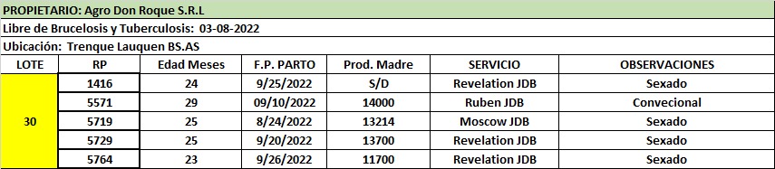 LOTE 30, Agrop. Don Roque 🔥 🔥 🔥 Lote Anterior Volver al remate Lote Siguiente Ficha Contacto Buenos Aires - Trenque Lauquen Ficha del Lote Identificador: #169257 Cantidad: 5 Categoría: Vaquillonas preñadas Pedigree Plazo 60, 90 y 120 días Buenos Aires - Trenque Lauquen 65 Visualizaciones ClicData Contacto Comercial a cargo: Alan Zbrun Empresa: Cooperativa Agrícola Ganadera Guillermo Lehmann Nombre*: Teléfono* : E-mail* : Mensaje Enviar Registrese gratis Este contenido Exclusivo está disponible sólo para usuarios registrados Ingresar