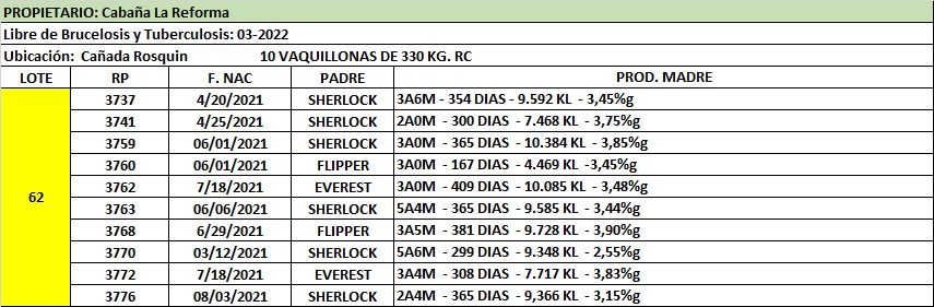 LOTE 62, La Reforma 🔥 🔥 🔥 Lote Anterior Volver al remate Lote Siguiente Ficha Contacto Santa Fe - Cañada Rosquín Ficha del Lote Identificador: #169454 Cantidad: 10 Categoría: Vaquillonas adelantadas Pedigree Plazo 60, 90 y 120 días Santa Fe - Cañada Rosquín 68 Visualizaciones ClicData Contacto Comercial a cargo: Alan Zbrun Empresa: Cooperativa Agrícola Ganadera Guillermo Lehmann Nombre*: Teléfono* : E-mail* : Mensaje Enviar Registrese gratis Este contenido Exclusivo está disponible sólo para usuarios registrados Ingresar