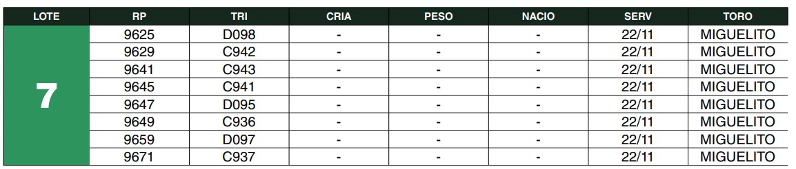 LOTE 7, Hembras PC