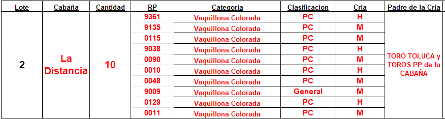 LOTE 2, Vientres Paridos MaS - Puros Controlados Colorados 🔥 🔥 🔥 Lote Anterior Volver al remate Lote Siguiente Información del Lote Pedigree Ofertar Contacto Buenos Aires - Balcarce Información del Lote Identificador: #232771 Cantidad 10 Categoría Vaquillonas Provincia Buenos Aires Ubicación Balcarce Propietario La Distancia Buenos Aires - Balcarce Ofertar Fecha de cierre: 01 de Septiembre a las 20:00hs. Aún no tiene ofertas Plazo: Contado 7 y 14 días 15 días 30 y 60 del remate 20 días 21 dias 30 del remate 30 días 30 y 45 dias 40 días 25 días del remate 45 días 30 y 60 días 25 y 55 días 0, 30 y 60 días 25 días 55 días 60 días 60, 90 y 120 días 30, 60 y 90 días 70 días 60 y 90 días 35 y 65 días 30 y 50 días 25 y 40 días 30 y 40 días 90 días 50 y 100 días 120 días 60 días del remate 30 y 45 Días del Remate 30 y 45 Días 20/50 y 80 días 30 días del remate 30 y 60 días del remate 30, 60 y 90 días del remate 30 y 45 Días 50 y 80 días 20 y 50 días 45 Días del Remate 17 días 15 - 50 días 28 días 30-60-90 O 60 25-55-85 25-45 días 18 días Desde el Remate 150 días 180 días 25, 55 y 85 días 30, 60, 90, 120 y 150 días 30, 60, 90 y 120 días 0, 30, 60 y 90 dias 20, 40 y 60 días 6 Cuotas Otro Consultar Su Oferta en $: − + Step: -25.000,00 / +25.000,00 Programar puja hasta: Programar puja hasta Aumentar puja programada 425000 875000 **Oferta al bulto Iniciar sesión para ofertar Ofertar Compra por $ 99.000.000,00 Ofertas Recibidas $ Fecha/Hora Estado Este lote aún no tiene preofertas. ¿Estás seguro de comprar el LOTE Vientres Paridos MaS - Puros Controlados Colorados por $ 99000000 ? 49 Visualizaciones ClicData Pedigree Contacto Empresa: Pedro Noel Irey S.R.L. Nombre*: E-mail* : Mensaje Enviar