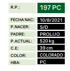 LOTE 62 - RP 197, TOROS PUROS CONTROLADOS Lote Anterior Volver al remate Lote Siguiente Información del Lote Animal Pedigree Ofertar Contacto Buenos Aires - Balcarce Información del Lote Identificador: #232862 Categoría Toros Provincia Buenos Aires Ubicación Balcarce Propietario La Distancia Buenos Aires - Balcarce Ofertar Fecha de cierre: 01 de Septiembre a las 20:00hs. Aún no tiene ofertas Animales: 197 Plazo: Contado 7 y 14 días 15 días 30 y 60 del remate 20 días 21 dias 30 del remate 30 días 30 y 45 dias 40 días 25 días del remate 45 días 30 y 60 días 25 y 55 días 0, 30 y 60 días 25 días 55 días 60 días 60, 90 y 120 días 30, 60 y 90 días 70 días 60 y 90 días 35 y 65 días 30 y 50 días 25 y 40 días 30 y 40 días 90 días 50 y 100 días 120 días 60 días del remate 30 y 45 Días del Remate 30 y 45 Días 20/50 y 80 días 30 días del remate 30 y 60 días del remate 30, 60 y 90 días del remate 30 y 45 Días 50 y 80 días 20 y 50 días 45 Días del Remate 17 días 15 - 50 días 28 días 30-60-90 O 60 25-55-85 25-45 días 18 días Desde el Remate 150 días 180 días 25, 55 y 85 días 30, 60, 90, 120 y 150 días 30, 60, 90 y 120 días 0, 30, 60 y 90 dias 20, 40 y 60 días 6 Cuotas Otro Consultar Su Oferta en $: − + Step: -50.000,00 / +50.000,00 Programar puja hasta: Programar puja hasta Aumentar puja programada 800000 1700000 **Oferta al bulto Iniciar sesión para ofertar Ofertar Compra por $ 99.000.000,00 Ofertas Recibidas $ Fecha/Hora Estado Este lote aún no tiene preofertas. ¿Estás seguro de comprar el LOTE TOROS PUROS CONTROLADOS por $ 99000000 ? 9 Visualizaciones ClicData Animal RP 197 PADRE PROLIJO MADRE PC NAC 10/8/2021 PRECIO BASE 0.00 RP 197 PADRE PROLIJO MADRE PC NAC 10/8/2021 PRECIO BASE 0.00 Pedigree Contacto Empresa: Pedro Noel Irey S.R.L. Nombre*: E-mail* : Mensaje Enviar