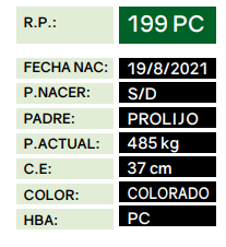LOTE 65 - RP 199, TOROS PUROS CONTROLADOS Lote Anterior Volver al remate Lote Siguiente Información del Lote Animal Pedigree Ofertar Contacto Buenos Aires - Balcarce Información del Lote Identificador: #232869 Categoría Toros Provincia Buenos Aires Ubicación Balcarce Propietario La Distancia Buenos Aires - Balcarce Ofertar Fecha de cierre: 01 de Septiembre a las 20:00hs. Aún no tiene ofertas Animales: 199 Plazo: Contado 7 y 14 días 15 días 30 y 60 del remate 20 días 21 dias 30 del remate 30 días 30 y 45 dias 40 días 25 días del remate 45 días 30 y 60 días 25 y 55 días 0, 30 y 60 días 25 días 55 días 60 días 60, 90 y 120 días 30, 60 y 90 días 70 días 60 y 90 días 35 y 65 días 30 y 50 días 25 y 40 días 30 y 40 días 90 días 50 y 100 días 120 días 60 días del remate 30 y 45 Días del Remate 30 y 45 Días 20/50 y 80 días 30 días del remate 30 y 60 días del remate 30, 60 y 90 días del remate 30 y 45 Días 50 y 80 días 20 y 50 días 45 Días del Remate 17 días 15 - 50 días 28 días 30-60-90 O 60 25-55-85 25-45 días 18 días Desde el Remate 150 días 180 días 25, 55 y 85 días 30, 60, 90, 120 y 150 días 30, 60, 90 y 120 días 0, 30, 60 y 90 dias 20, 40 y 60 días 6 Cuotas Otro Consultar Su Oferta en $: − + Step: -50.000,00 / +50.000,00 Programar puja hasta: Programar puja hasta Aumentar puja programada 800000 1700000 **Oferta al bulto Iniciar sesión para ofertar Ofertar Compra por $ 99.000.000,00 Ofertas Recibidas $ Fecha/Hora Estado Este lote aún no tiene preofertas. ¿Estás seguro de comprar el LOTE TOROS PUROS CONTROLADOS por $ 99000000 ? 5 Visualizaciones ClicData Animal RP 199 PADRE PROLIJO MADRE PC NAC 19/8/2021 PRECIO BASE 0.00 RP 199 PADRE PROLIJO MADRE PC NAC 19/8/2021 PRECIO BASE 0.00 Pedigree Contacto Empresa: Pedro Noel Irey S.R.L. Nombre*: E-mail* : Mensaje Enviar