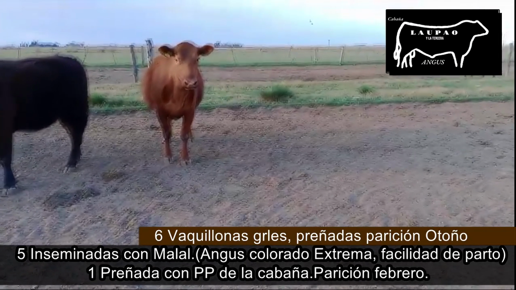 | Observaciones | "6 vq generales preñadas paricion OToño. (3 negras y 3 coloradas.) 5 Inseminadas con Malal.( angus colorado extrema facilidad de parto) 1 preñada con pp de la cabaña . Paricion febrero" |