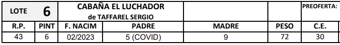 LOTE 6, SANTA INES P.P. 🔥 🔥 🔥 Lote Anterior Volver al remate Lote Siguiente Ficha Contacto Ofertar Entre Ríos - Herrera Ficha del Lote Identificador: #254710 Categoría: Macho PP Pedigree Plazo 6 cuotas Entre Ríos - Herrera Ofertar Fecha de cierre: 14 de Febrero a las 20:00hs. Aún no tiene ofertas Plazo: Contado 7 y 14 días 15 días 30 y 60 del remate 20 días 21 dias 30 del remate 30 días 30 y 45 dias 40 días 25 días del remate 45 días 30 y 60 días 25 y 55 días 0, 30 y 60 días 25 días 55 días 60 días 60, 90 y 120 días 30, 60 y 90 días 70 días 60 y 90 días 35 y 65 días 30 y 50 días 25 y 40 días 30 y 40 días 90 días 50 y 100 días 120 días 60 días del remate 30 y 45 Días del Remate 30 y 45 Días 20/50 y 80 días 30 días del remate 30 y 60 días del remate 30, 60 y 90 días del remate 30 y 45 Días 50 y 80 días 20 y 50 días 45 Días del Remate 17 días 15 - 50 días 28 días 30-60-90 O 60 25-55-85 25-45 días 18 días Desde el Remate 150 días 180 días 25, 55 y 85 días 30, 60, 90, 120 y 150 días 30, 60, 90 y 120 días 0, 30, 60 y 90 dias 20, 40 y 60 días 6 Cuotas Otro Consultar Su Oferta en $: (por 6 cuotas) − + Step: -1.000,00 / +1.000,00 Programar puja hasta: Programar puja hasta Aumentar puja programada 152000 170000 Iniciar sesión para ofertar Ofertar Compra por $ 99.000.000,00 Ofertas Recibidas $ Fecha/Hora Estado Este lote aún no tiene preofertas. ¿Estás seguro de comprar el LOTE SANTA INES P.P. por 6 cuotas de $ 99000000 ? 120 Visualizaciones ClicData Contacto Empresa: Francisco Carbajal Remates de Hacienda Nombre*: Teléfono* : E-mail* : Mensaje Enviar