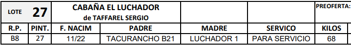 LOTE 27, DORPER P.P. Lote Anterior Volver al remate Lote Siguiente Ficha Contacto Ofertar Entre Ríos - Herrera Ficha del Lote Identificador: #254730 Categoría: Hembra PP Pedigree Plazo 6 cuotas Entre Ríos - Herrera Ofertar Fecha de cierre: 14 de Febrero a las 20:00hs. Aún no tiene ofertas Plazo: Contado 7 y 14 días 15 días 30 y 60 del remate 20 días 21 dias 30 del remate 30 días 30 y 45 dias 40 días 25 días del remate 45 días 30 y 60 días 25 y 55 días 0, 30 y 60 días 25 días 55 días 60 días 60, 90 y 120 días 30, 60 y 90 días 70 días 60 y 90 días 35 y 65 días 30 y 50 días 25 y 40 días 30 y 40 días 90 días 50 y 100 días 120 días 60 días del remate 30 y 45 Días del Remate 30 y 45 Días 20/50 y 80 días 30 días del remate 30 y 60 días del remate 30, 60 y 90 días del remate 30 y 45 Días 50 y 80 días 20 y 50 días 45 Días del Remate 17 días 15 - 50 días 28 días 30-60-90 O 60 25-55-85 25-45 días 18 días Desde el Remate 150 días 180 días 25, 55 y 85 días 30, 60, 90, 120 y 150 días 30, 60, 90 y 120 días 0, 30, 60 y 90 dias 20, 40 y 60 días 6 Cuotas Otro Consultar Su Oferta en $: (por 6 cuotas) − + Step: -1.000,00 / +1.000,00 Programar puja hasta: Programar puja hasta Aumentar puja programada 202000 220000 Iniciar sesión para ofertar Ofertar Compra por $ 99.000.000,00 Ofertas Recibidas $ Fecha/Hora Estado Este lote aún no tiene preofertas. ¿Estás seguro de comprar el LOTE DORPER P.P. por 6 cuotas de $ 99000000 ? 57 Visualizaciones ClicData Contacto Empresa: Francisco Carbajal Remates de Hacienda Nombre*: Teléfono* : E-mail* : Mensaje Enviar