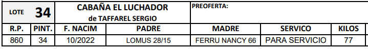 LOTE 34, HAMPSHIRE D. P.P. Lote Anterior Volver al remate Lote Siguiente Ficha Contacto Ofertar Entre Ríos - Herrera Ficha del Lote Identificador: #254737 Categoría: Hembra PP Pedigree Plazo 6 cuotas Entre Ríos - Herrera Ofertar Fecha de cierre: 14 de Febrero a las 20:00hs. Aún no tiene ofertas Plazo: Contado 7 y 14 días 15 días 30 y 60 del remate 20 días 21 dias 30 del remate 30 días 30 y 45 dias 40 días 25 días del remate 45 días 30 y 60 días 25 y 55 días 0, 30 y 60 días 25 días 55 días 60 días 60, 90 y 120 días 30, 60 y 90 días 70 días 60 y 90 días 35 y 65 días 30 y 50 días 25 y 40 días 30 y 40 días 90 días 50 y 100 días 120 días 60 días del remate 30 y 45 Días del Remate 30 y 45 Días 20/50 y 80 días 30 días del remate 30 y 60 días del remate 30, 60 y 90 días del remate 30 y 45 Días 50 y 80 días 20 y 50 días 45 Días del Remate 17 días 15 - 50 días 28 días 30-60-90 O 60 25-55-85 25-45 días 18 días Desde el Remate 150 días 180 días 25, 55 y 85 días 30, 60, 90, 120 y 150 días 30, 60, 90 y 120 días 0, 30, 60 y 90 dias 20, 40 y 60 días 6 Cuotas Otro Consultar Su Oferta en $: (por 6 cuotas) − + Step: -1.000,00 / +1.000,00 Programar puja hasta: Programar puja hasta Aumentar puja programada 62000 80000 Iniciar sesión para ofertar Ofertar Compra por $ 99.000.000,00 Ofertas Recibidas $ Fecha/Hora Estado Este lote aún no tiene preofertas. ¿Estás seguro de comprar el LOTE HAMPSHIRE D. P.P. por 6 cuotas de $ 99000000 ? 24 Visualizaciones ClicData Contacto Empresa: Francisco Carbajal Remates de Hacienda Nombre*: Teléfono* : E-mail* : Mensaje Enviar