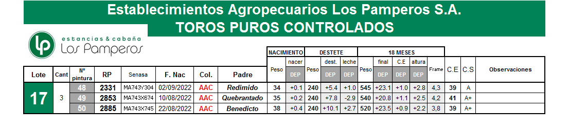 LOTE 17, TOROS PUROS CONTROLADOS Lote Anterior Volver al remate Lote Siguiente Información del Lote Animales del Lote Pedigree Ofertar Contacto Buenos Aires - Bolivar Información del Lote Identificador: #286473 Cantidad 3 Categoría Vaquillonas Provincia Buenos Aires Ubicación Bolivar Buenos Aires - Bolivar Ofertar Fecha de cierre: 21 de Agosto a las 18:00hs. Aún no tiene ofertas Animales: 2331 2853 2885 Plazo: Contado 7 y 14 días 15 días 30 y 60 del remate 20 días 21 dias 30 del remate 30 días 30 y 45 dias 40 días 25 días del remate 45 días 30 y 60 días 25 y 55 días 0, 30 y 60 días 25 días 55 días 60 días 60, 90 y 120 días 30, 60 y 90 días 70 días 60 y 90 días 35 y 65 días 30 y 50 días 25 y 40 días 30 y 40 días 90 días 50 y 100 días 120 días 60 días del remate 30 y 45 Días del Remate 30 y 45 Días 20/50 y 80 días 30 días del remate 30 y 60 días del remate 30, 60 y 90 días del remate 30 y 45 Días 50 y 80 días 20 y 50 días 45 Días del Remate 17 días 15 - 50 días 28 días 30-60-90 O 60 25-55-85 25-45 días 18 días Desde el Remate 150 días 180 días 25, 55 y 85 días 30, 60, 90, 120 y 150 días 30, 60, 90 y 120 días 0, 30, 60 y 90 dias 20, 40 y 60 días 6 Cuotas Otro Consultar Su Oferta en $: − + Step: -150.000,00 / +150.000,00 Programar puja hasta: Programar puja hasta Aumentar puja programada 3000000 5700000 **Oferta al bulto Iniciar sesión para ofertar Ofertar Compra por $ 99.000.000,00 Ofertas Recibidas $ Fecha/Hora Estado Este lote aún no tiene preofertas. ¿Estás seguro de comprar el LOTE TOROS PUROS CONTROLADOS por $ 99000000 ? 13 Visualizaciones ClicData Animales del Lote RP 2331 2853 2885 PADRE Redimido Quebrantado Benedicto NAC 02-09-2022 10-08-2022 22-08-2022 PRECIO BASE 0.00 0.00 0.00 RP 2331 PADRE Redimido NAC 02-09-2022 PRECIO BASE 0.00 RP 2853 PADRE Quebrantado NAC 10-08-2022 PRECIO BASE 0.00 RP 2885 PADRE Benedicto NAC 22-08-2022 PRECIO BASE 0.00 Pedigree Contacto Empresa: FERIAS DEL CENTRO S.R.L. Nombre*: E-mail* : Mensaje Enviar Registrese gratis Este contenido Exclusivo está disponible sólo para usuarios registrados Ingresar