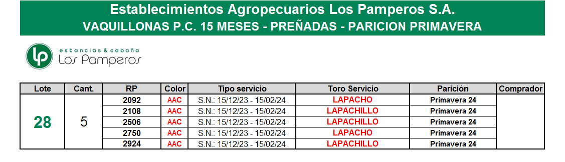 LOTE 28, VAQUILLONAS P.C. 15 MESES - PREÑADAS - PARICION PRIMAVERA Lote Anterior Volver al remate Lote Siguiente Información del Lote Pedigree Ofertar Contacto Buenos Aires - Bolivar Información del Lote Identificador: #286484 Cantidad 5 Categoría Vaquillonas Provincia Buenos Aires Ubicación Bolivar Buenos Aires - Bolivar Ofertar Fecha de cierre: 21 de Agosto a las 18:00hs. Aún no tiene ofertas Plazo: Contado 7 y 14 días 15 días 30 y 60 del remate 20 días 21 dias 30 del remate 30 días 30 y 45 dias 40 días 25 días del remate 45 días 30 y 60 días 25 y 55 días 0, 30 y 60 días 25 días 55 días 60 días 60, 90 y 120 días 30, 60 y 90 días 70 días 60 y 90 días 35 y 65 días 30 y 50 días 25 y 40 días 30 y 40 días 90 días 50 y 100 días 120 días 60 días del remate 30 y 45 Días del Remate 30 y 45 Días 20/50 y 80 días 30 días del remate 30 y 60 días del remate 30, 60 y 90 días del remate 30 y 45 Días 50 y 80 días 20 y 50 días 45 Días del Remate 17 días 15 - 50 días 28 días 30-60-90 O 60 25-55-85 25-45 días 18 días Desde el Remate 150 días 180 días 25, 55 y 85 días 30, 60, 90, 120 y 150 días 30, 60, 90 y 120 días 0, 30, 60 y 90 dias 20, 40 y 60 días 6 Cuotas Otro Consultar Su Oferta en $: − + Step: -100.000,00 / +100.000,00 Programar puja hasta: Programar puja hasta Aumentar puja programada 1400000 3200000 **Oferta al bulto Iniciar sesión para ofertar Ofertar Compra por $ 99.000.000,00 Ofertas Recibidas $ Fecha/Hora Estado Este lote aún no tiene preofertas. ¿Estás seguro de comprar el LOTE VAQUILLONAS P.C. 15 MESES - PREÑADAS - PARICION PRIMAVERA por $ 99000000 ? 16 Visualizaciones ClicData Pedigree Contacto Empresa: FERIAS DEL CENTRO S.R.L. Nombre*: E-mail* : Mensaje Enviar Registrese gratis Este contenido Exclusivo está disponible sólo para usuarios registrados Ingresar