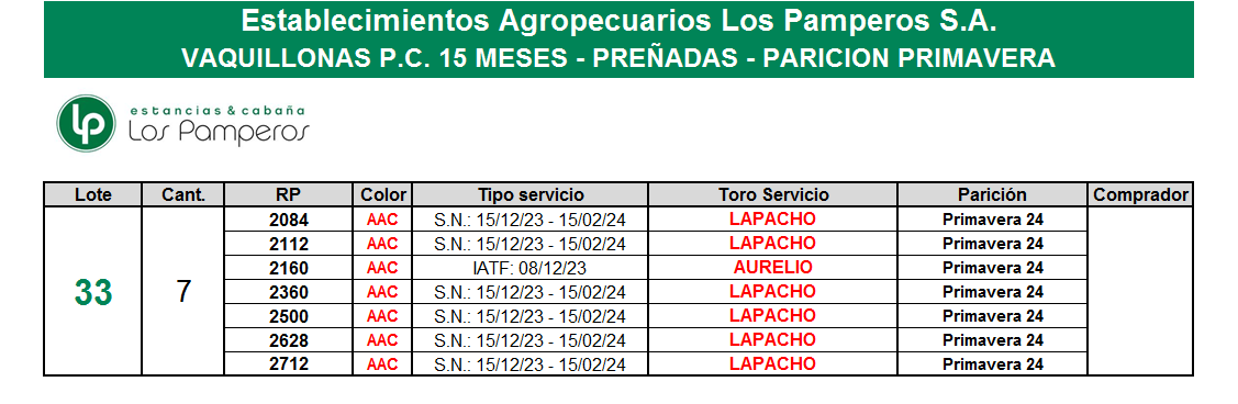 LOTE 33, VAQUILLONAS P.C. 15 MESES - PREÑADAS - PARICION PRIMAVERA Lote Anterior Volver al remate Lote Siguiente Información del Lote Pedigree Ofertar Contacto Buenos Aires - Bolivar Información del Lote Identificador: #286489 Cantidad 7 Categoría Vaquillonas Provincia Buenos Aires Ubicación Bolivar Buenos Aires - Bolivar Ofertar Fecha de cierre: 21 de Agosto a las 18:00hs. Aún no tiene ofertas Plazo: Contado 7 y 14 días 15 días 30 y 60 del remate 20 días 21 dias 30 del remate 30 días 30 y 45 dias 40 días 25 días del remate 45 días 30 y 60 días 25 y 55 días 0, 30 y 60 días 25 días 55 días 60 días 60, 90 y 120 días 30, 60 y 90 días 70 días 60 y 90 días 35 y 65 días 30 y 50 días 25 y 40 días 30 y 40 días 90 días 50 y 100 días 120 días 60 días del remate 30 y 45 Días del Remate 30 y 45 Días 20/50 y 80 días 30 días del remate 30 y 60 días del remate 30, 60 y 90 días del remate 30 y 45 Días 50 y 80 días 20 y 50 días 45 Días del Remate 17 días 15 - 50 días 28 días 30-60-90 O 60 25-55-85 25-45 días 18 días Desde el Remate 150 días 180 días 25, 55 y 85 días 30, 60, 90, 120 y 150 días 30, 60, 90 y 120 días 0, 30, 60 y 90 dias 20, 40 y 60 días 6 Cuotas Otro Consultar Su Oferta en $: − + Step: -100.000,00 / +100.000,00 Programar puja hasta: Programar puja hasta Aumentar puja programada 1400000 3200000 **Oferta al bulto Iniciar sesión para ofertar Ofertar Compra por $ 99.000.000,00 Ofertas Recibidas $ Fecha/Hora Estado Este lote aún no tiene preofertas. ¿Estás seguro de comprar el LOTE VAQUILLONAS P.C. 15 MESES - PREÑADAS - PARICION PRIMAVERA por $ 99000000 ? 13 Visualizaciones ClicData Pedigree Contacto Empresa: FERIAS DEL CENTRO S.R.L. Nombre*: E-mail* : Mensaje Enviar Registrese gratis Este contenido Exclusivo está disponible sólo para usuarios registrados Ingresar