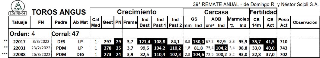 | Raza | ANGUS |