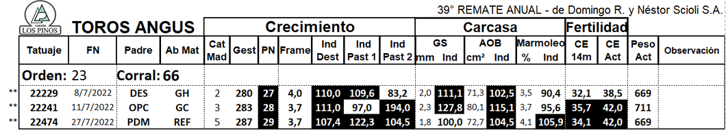 LOTE 23 - RP 22474, TORO ANGUS