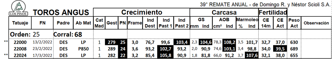 LOTE 25 - RP 22008, TORO ANGUS