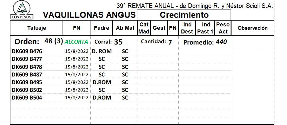 LOTE 48, VQ ANGUS IE Lote Anterior Volver al remate Información del Lote Pedigree Ofertar Contacto Buenos Aires - Balcarce Información del Lote Identificador: #286673 Cantidad 7 Categoría Vaquillonas Raza ANGUS Provincia Buenos Aires Ubicación Balcarce Propietario ALCORTA HNOS Buenos Aires - Balcarce Ofertar Fecha de cierre: 21 de Agosto a las 21:04hs. Prórroga: 2 minutos Aún no tiene ofertas Plazo: Contado 7 y 14 días 15 días 30 y 60 del remate 20 días 21 dias 30 del remate 30 días 30 y 45 dias 40 días 25 días del remate 45 días 30 y 60 días 25 y 55 días 0, 30 y 60 días 25 días 55 días 60 días 60, 90 y 120 días 30, 60 y 90 días 70 días 60 y 90 días 35 y 65 días 30 y 50 días 25 y 40 días 30 y 40 días 90 días 50 y 100 días 120 días 60 días del remate 30 y 45 Días del Remate 30 y 45 Días 20/50 y 80 días 30 días del remate 30 y 60 días del remate 30, 60 y 90 días del remate 30 y 45 Días 50 y 80 días 20 y 50 días 45 Días del Remate 17 días 15 - 50 días 28 días 30-60-90 O 60 25-55-85 25-45 días 18 días Desde el Remate 150 días 180 días 25, 55 y 85 días 30, 60, 90, 120 y 150 días 30, 60, 90 y 120 días 0, 30, 60 y 90 dias 20, 40 y 60 días 6 Cuotas Otro Consultar Su Oferta en $: − + Step: -50.000,00 / +50.000,00 Programar puja hasta: Programar puja hasta Aumentar puja programada 1100000 2000000 **Oferta al bulto Iniciar sesión para ofertar Ofertar Compra por $ 99.000.000,00 Ofertas Recibidas $ Fecha/Hora Estado Este lote aún no tiene preofertas. ¿Estás seguro de comprar el LOTE VQ ANGUS IE por $ 99000000 ? 37 Visualizaciones ClicData Pedigree Contacto Empresa: Cabaña Los Pinos Nombre*: E-mail* : Mensaje Enviar