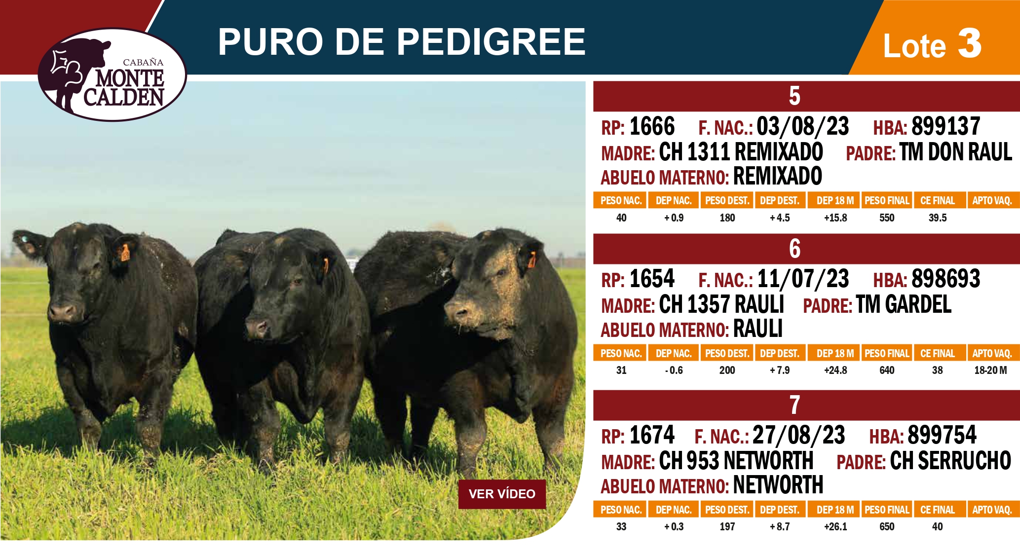 LOTE 3, Toros PP 🔥 🔥 🔥 Lote Anterior Volver al remate Lote Siguiente Información del Lote Animales del Lote Pedigree Contacto Buenos Aires - Información del Lote Identificador: #333014 Cantidad 3 Categoría Toros Provincia Buenos Aires Buenos Aires - 7 Visualizaciones ClicData Animales del Lote RP 1666 1654 1674 PADRE TM Don Raul TM Gardel CH Serrucho MADRE CH1311 CH1357 CH953 ABUELO MATERNO Remixado Rauli Networth PF 550 640 650 PN 40 31 33 PRECIO BASE 0.00 0.00 0.00 RP 1666 PADRE TM Don Raul MADRE CH1311 ABUELO MATERNO Remixado PF 550 PN 40 PRECIO BASE 0.00 RP 1654 PADRE TM Gardel MADRE CH1357 ABUELO MATERNO Rauli PF 640 PN 31 PRECIO BASE 0.00 RP 1674 PADRE CH Serrucho MADRE CH953 ABUELO MATERNO Networth PF 650 PN 33 PRECIO BASE 0.00 Pedigree Contacto Empresa: J.S. Russo y Cia. Nombre*: E-mail* : Mensaje Enviar Registrese gratis Este contenido Exclusivo está disponible sólo para usuarios registrados Ingresar