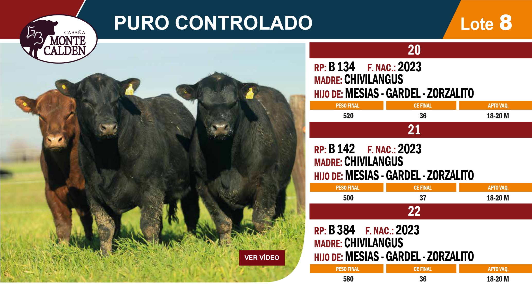 LOTE 8, Toros PC Lote Anterior Volver al remate Lote Siguiente Información del Lote Animales del Lote Pedigree Contacto Buenos Aires - Información del Lote Identificador: #333019 Cantidad 3 Categoría Toros Provincia Buenos Aires Buenos Aires - 2 Visualizaciones ClicData Animales del Lote RP B134 B142 B384 PADRE Mesias / Zorzalito / Gardel Mesias / Zorzalito / Gardel Mesias / Zorzalito / Gardel MADRE Chivilangus Chivilangus Chivilangus NAC 2023 2023 2023 CE 36 37 36 PF 520 500 580 PRECIO BASE 0.00 0.00 0.00 RP B134 PADRE Mesias / Zorzalito / Gardel MADRE Chivilangus NAC 2023 CE 36 PF 520 PRECIO BASE 0.00 RP B142 PADRE Mesias / Zorzalito / Gardel MADRE Chivilangus NAC 2023 CE 37 PF 500 PRECIO BASE 0.00 RP B384 PADRE Mesias / Zorzalito / Gardel MADRE Chivilangus NAC 2023 CE 36 PF 580 PRECIO BASE 0.00 Pedigree Contacto Empresa: J.S. Russo y Cia. Nombre*: E-mail* : Mensaje Enviar Registrese gratis Este contenido Exclusivo está disponible sólo para usuarios registrados Ingresar
