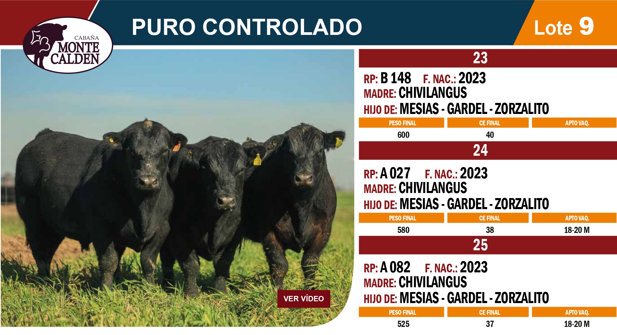 LOTE 9, Toros PC Lote Anterior Volver al remate Lote Siguiente Información del Lote Animales del Lote Pedigree Contacto Buenos Aires - Información del Lote Identificador: #333020 Cantidad 3 Categoría Toros Provincia Buenos Aires Buenos Aires - 2 Visualizaciones ClicData Animales del Lote RP B148 A027 A082 PADRE Mesias / Zorzalito / Gardel Mesias / Zorzalito / Gardel Mesias / Zorzalito / Gardel MADRE Chivilangus Chivilangus Chivilangus NAC 2023 2023 2023 CE 40 38 37 PF 600 580 525 PRECIO BASE 0.00 0.00 0.00 RP B148 PADRE Mesias / Zorzalito / Gardel MADRE Chivilangus NAC 2023 CE 40 PF 600 PRECIO BASE 0.00 RP A027 PADRE Mesias / Zorzalito / Gardel MADRE Chivilangus NAC 2023 CE 38 PF 580 PRECIO BASE 0.00 RP A082 PADRE Mesias / Zorzalito / Gardel MADRE Chivilangus NAC 2023 CE 37 PF 525 PRECIO BASE 0.00 Pedigree Contacto Empresa: J.S. Russo y Cia. Nombre*: E-mail* : Mensaje Enviar Registrese gratis Este contenido Exclusivo está disponible sólo para usuarios registrados Ingresar