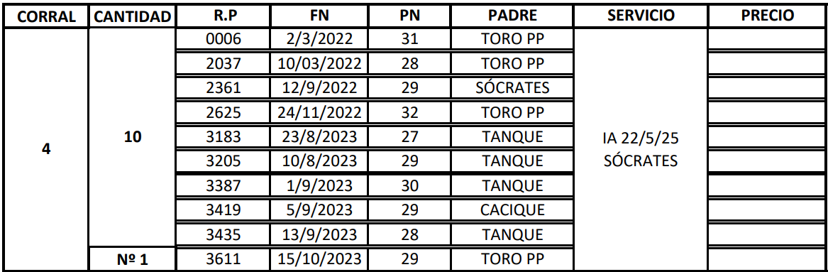 | Categoría | Vaquillonas |