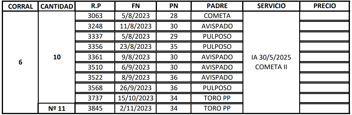| Categoría | Vaquillonas |