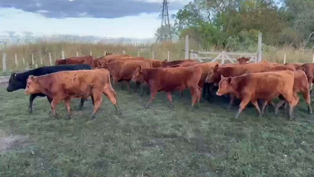 en el lote hay 18 machos y 12 hembras Angus de 170/180 kg y 10 machos y 10 hembras Braford de 200/220. la tropa está en general Campos. se pesa en balanza de camión con el 3%